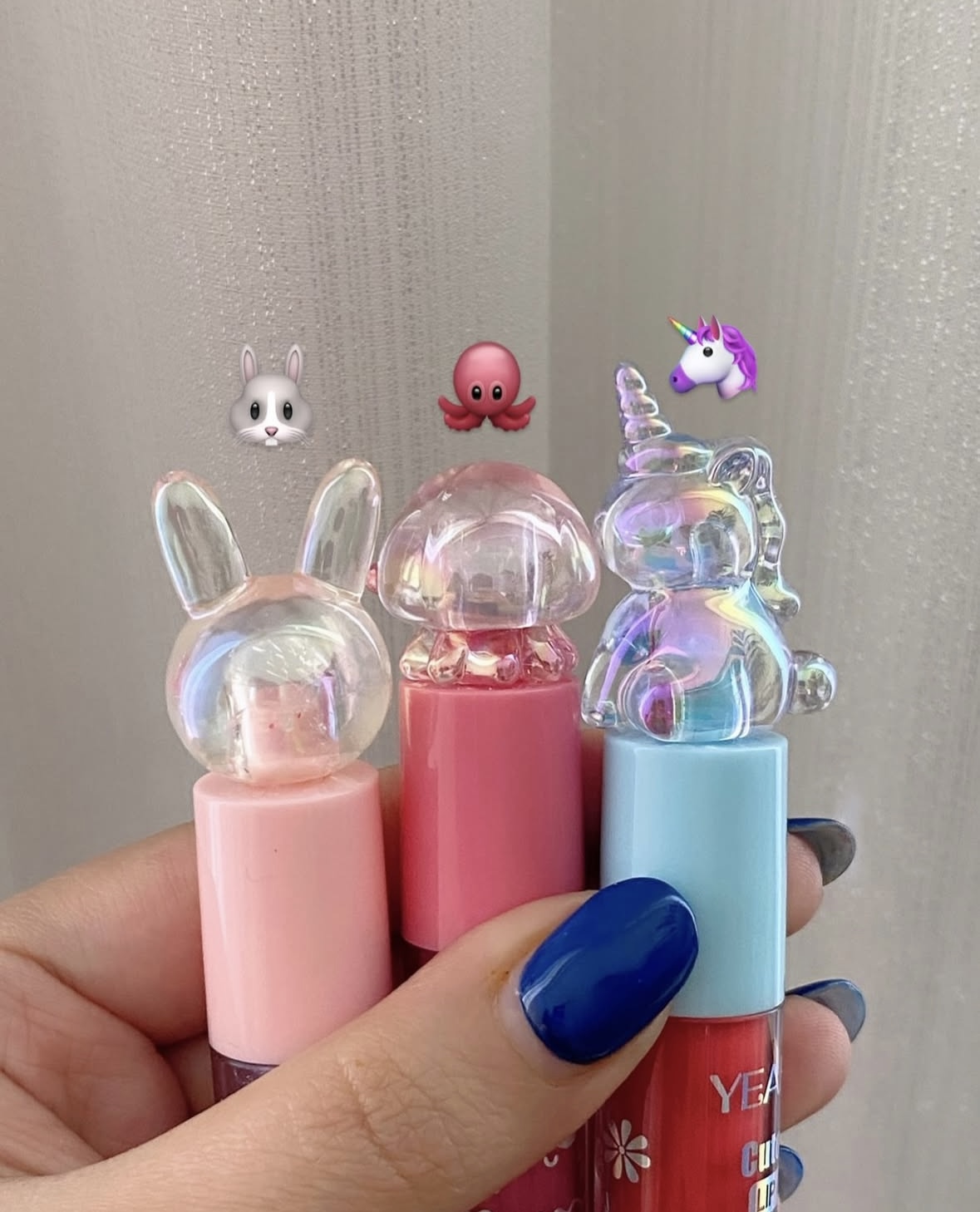 پک ۳تایی لیپگلاس و رژ مایع پکیجینگ پینترستی عروسکی رژهای ۲۴ساعت باکیفیت لیپگلاس همراه با شاین های ریز و درشت